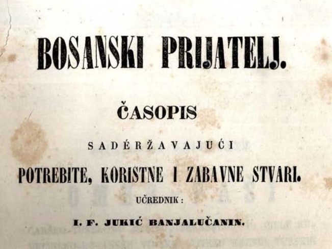 Iako štampane u Zagrebu i Sisku, prvim bosanskohercegovačkim novinama smatra se Bosanski prijatelj. Već na naslovnici prvog broja iz 1850. godine, njihov osnivač fra Ivan Frano Jukić obećava da će časopis sadržavati „potrebite koristne i zabavne stvari“ što upućuje i na edukativnu i zabavnu, a ne samo informativnu ulogu, kao primarnu, prvih novina u Bosni i Hercegovini.