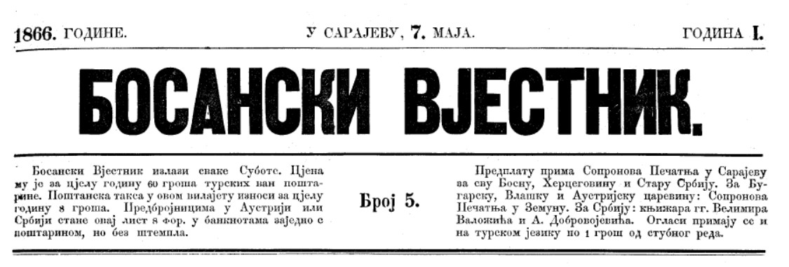 Prve bosanske novine štampane u Zagrebu i Sisku
