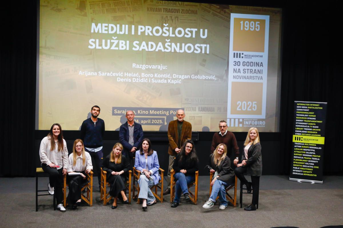 Tim Mediacentra Sarajevo u procesu od ideje do realizacije serijala činilo je 11 ljudi. Na zajedničkoj fotografiji raspoređeni smo poput fudbalske postave – jedni stoje, drugi sjede – ali iza te jednostavne kompozicije stoji jasno podijeljena odgovornost i timska koordinacija.