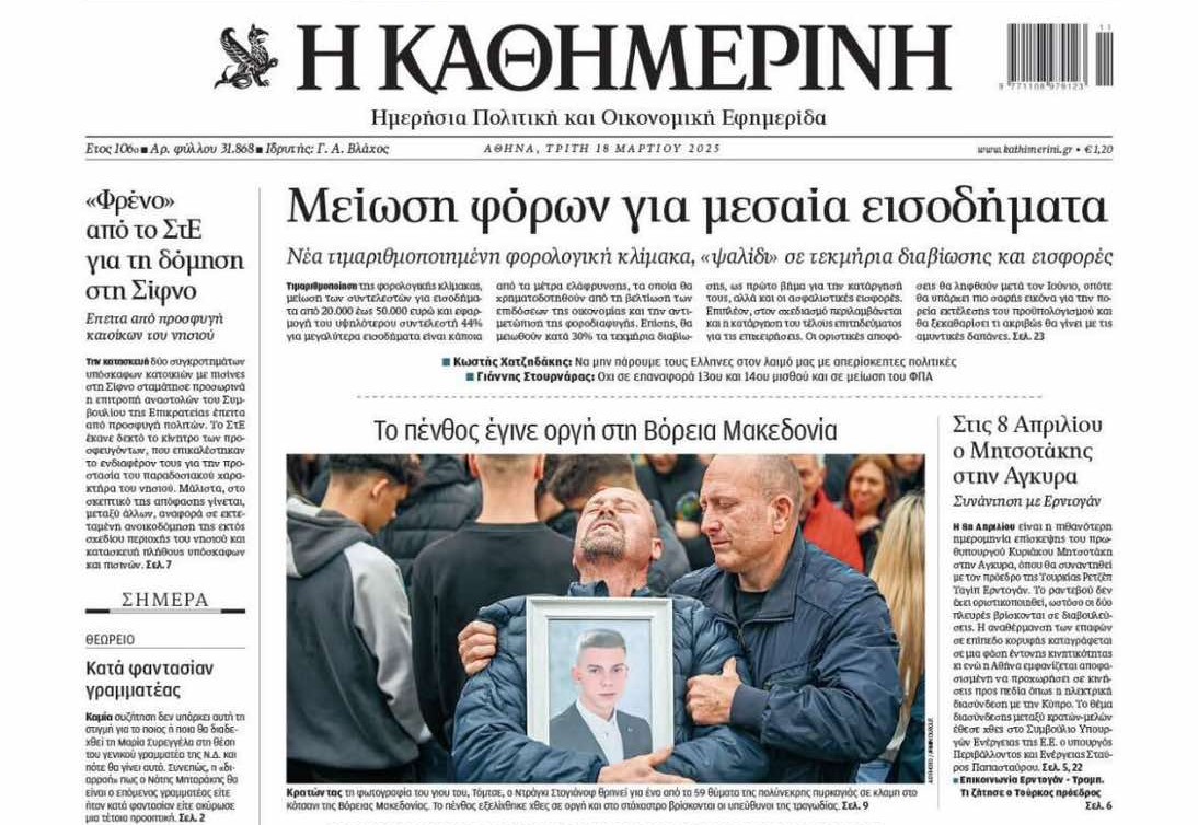 Durgutova fotografija na naslovnici grčkih novina 'Kathimerini'