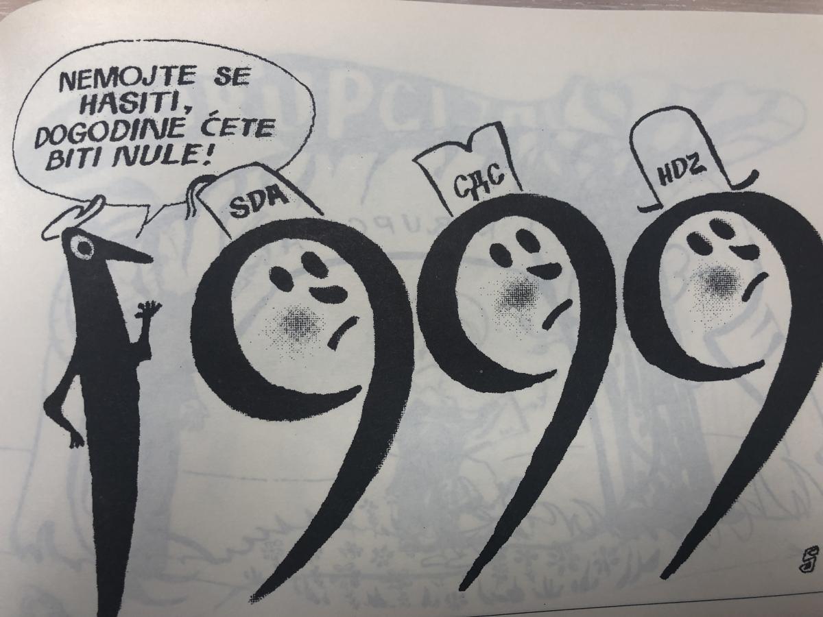 Druga je priča o karikaturi koju je napravio na prijelazu sa 1999. na 2000. godinu, razmišljajući „o one tri nule“ u narednoj godini i kako da to iskoristi.